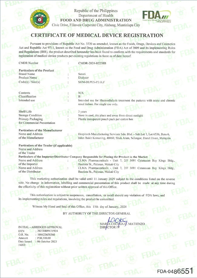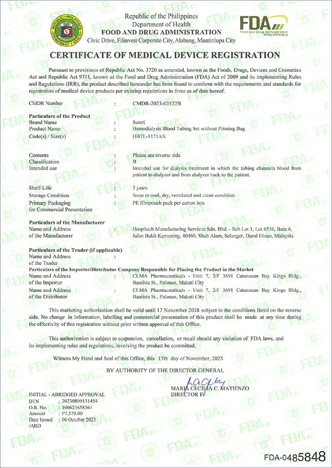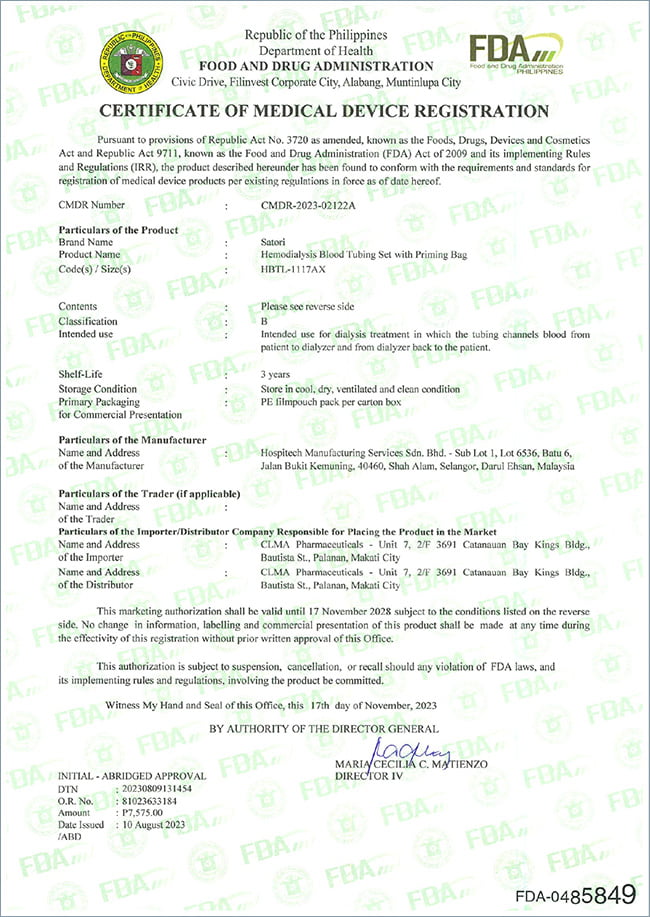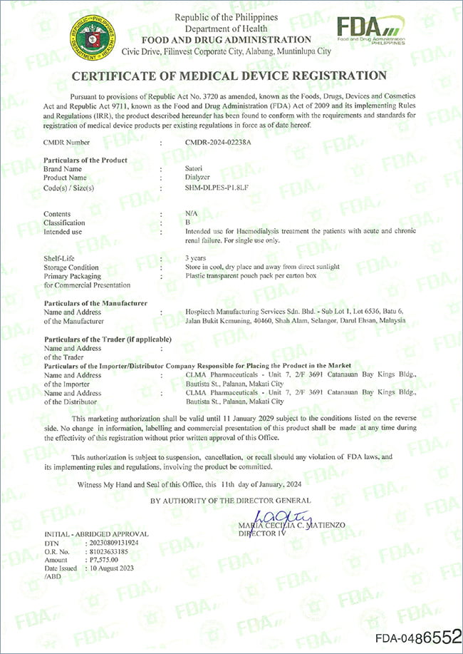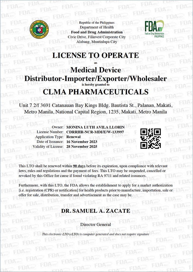 We are granted license to operate from FDA as a Medical Device distributor-Importer